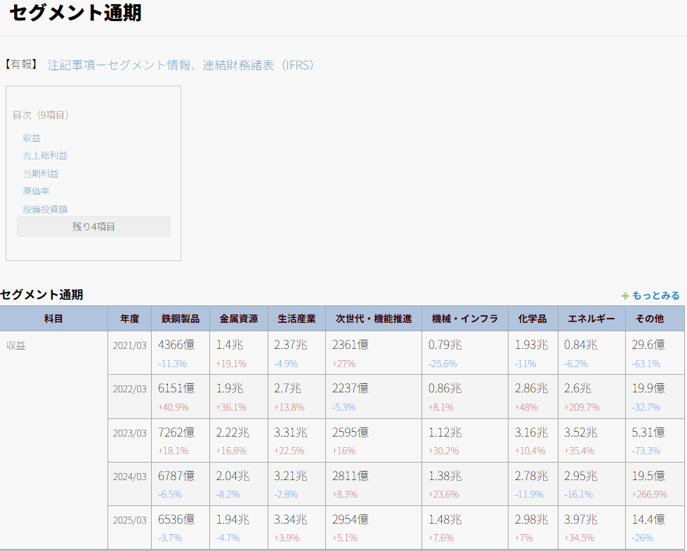 ここがポイント: 売上だけでなく、「セグメント利益(どの事業で利益が出ているか)」が正確に分かります。