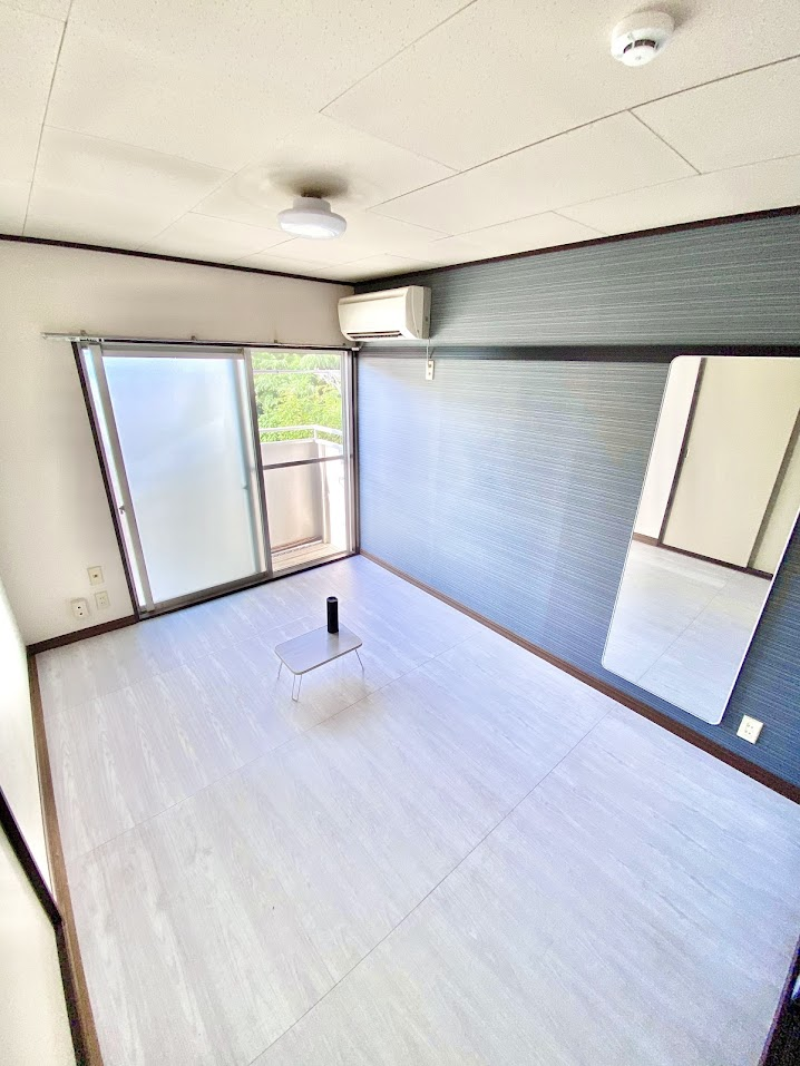 ごく普通の1K賃貸アパートだよ。フローリングは白いシート買って張り替えました。その方が落ち着くし広く感じるんだ。